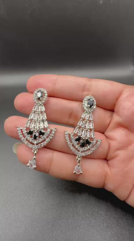 Elegant chandelier design Sparkling zircons with striking black stones Perfect for weddings, parties & special occasions A glamorous gift for her