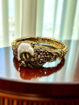 Intricately crafted metalwork with antique detailing