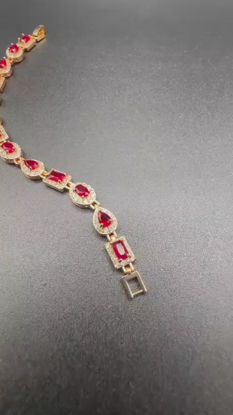 Stunning ruby stones Durable golden base finish Ideal for parties, weddings & gifting Length 7.5 inches