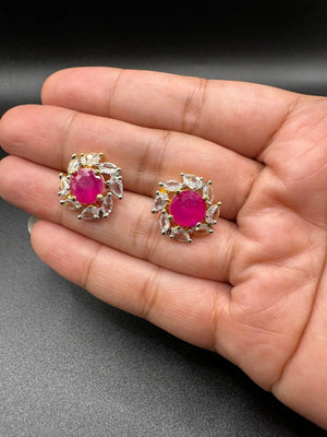 Zircon studs with ruby in gold base