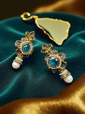 - Rich blue stone embellishments