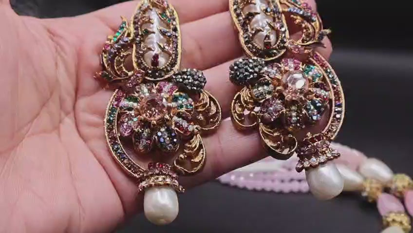 Complete set: mala-style necklace + matching earrings