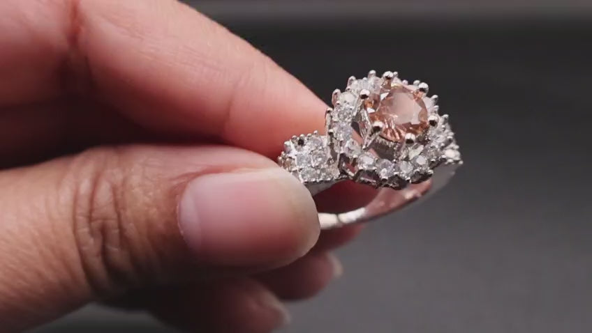 Bold champagne solitaire stone as the central highlight Brilliant zircon accents for extra sparkle Elegant silver frame with intricate craftsmanship Stylish, versatile design suitable for both casual and formal looks