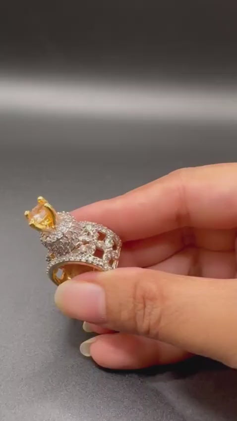 Set with a deep-toned champion stone at the center